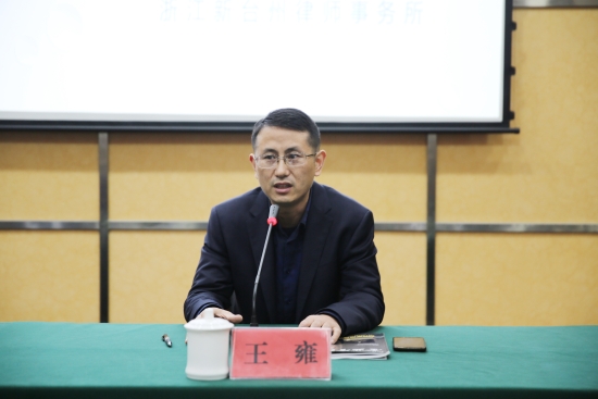 圖為王雍主持培訓(xùn)會 本次培訓(xùn)會邀請了浙江新臺州律師事務(wù)所律師程龍為大家授課。程龍結(jié)合實際案例對最新的九民紀要進行解讀,并講解了有關(guān)集團提供擔保、股東代表訴訟、表決權(quán)能否受限、借款合同等相關(guān)法律知識,還對可能存在的的風險,及可能引發(fā)的民事責任、行政責任和刑事責任等進行相應(yīng)的介紹。