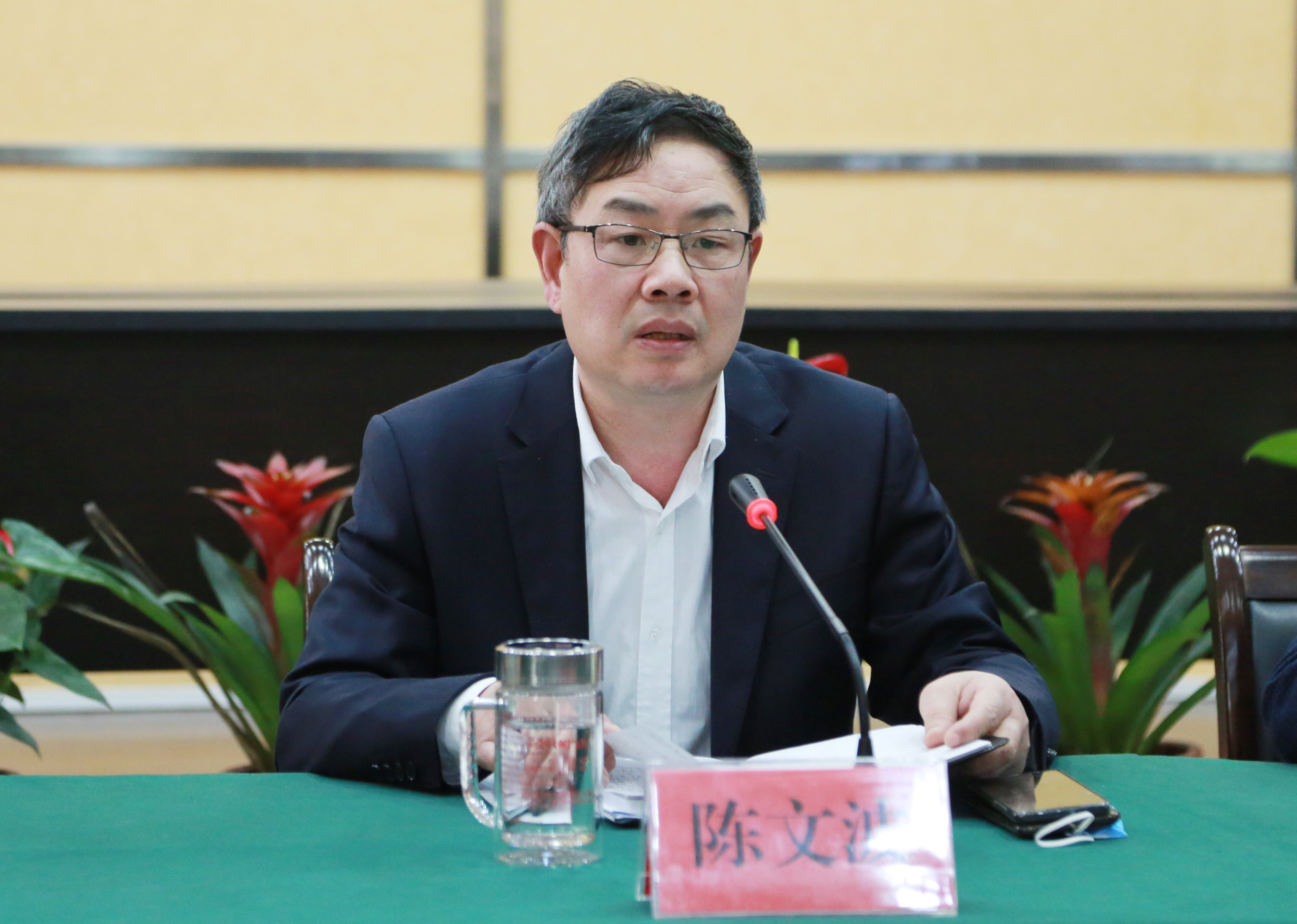 圖為陳文波在會(huì)上發(fā)表講話