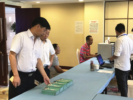 圖為集團(tuán)副總經(jīng)理陳保衛(wèi)正在檢查收購(gòu)點(diǎn)宣傳資料