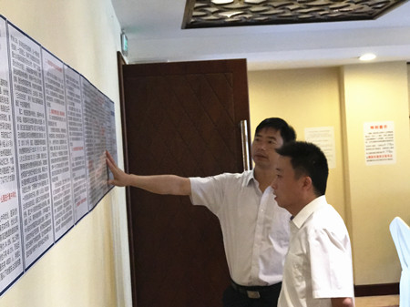 圖為集團(tuán)副總經(jīng)理陳保衛(wèi)正在檢查標(biāo)語(yǔ)標(biāo)識(shí) 陳保衛(wèi)認(rèn)真查看了仙居收購(gòu)點(diǎn)從入口到辦理點(diǎn)的指示標(biāo)牌,并向工作人員詢問(wèn)了該收購(gòu)點(diǎn)所在酒店的知名度。經(jīng)工作人員介紹,仙居?xùn)|方大酒店是仙居當(dāng)?shù)厝朔浅J煜さ木频?,還未發(fā)生過(guò)股東找不到收購(gòu)點(diǎn)而打電話詢問(wèn)的事。陳保衛(wèi)聽(tīng)后面帶微笑,連連點(diǎn)頭。 走到收購(gòu)點(diǎn)內(nèi),員工正在給幾名股東辦理咨詢業(yè)務(wù),陳保衛(wèi)轉(zhuǎn)身查看起收購(gòu)點(diǎn)內(nèi)等待區(qū)、標(biāo)語(yǔ)標(biāo)識(shí)等布置。當(dāng)看到貼在墻上的“市國(guó)資委主任徐豪就臺(tái)州高速股權(quán)集中和優(yōu)化的有關(guān)問(wèn)題接收臺(tái)州各大媒體的采訪提問(wèn)”內(nèi)容時(shí),陳保衛(wèi)認(rèn)為該招貼畫(huà)制作簡(jiǎn)潔、一目了然,可以較好地展示公司形象,回答股東疑問(wèn)。他要求收購(gòu)點(diǎn)工作人員再接再厲、主動(dòng)作為,以熱情飽滿的服務(wù)態(tài)度,貫徹落實(shí)好各項(xiàng)工作部署,共同努力完成股權(quán)集中和優(yōu)化工作。 眼下,該收購(gòu)點(diǎn)股權(quán)集中和優(yōu)化工作已步入正軌,各項(xiàng)工作運(yùn)行平穩(wěn)正常,當(dāng)前正在為9月8日仙居縣國(guó)有資產(chǎn)投資集團(tuán)有限公司第一個(gè)轉(zhuǎn)讓股權(quán)宣傳事宜進(jìn)行多方協(xié)調(diào)。 張波