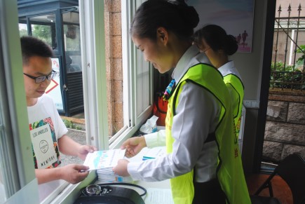 圖為志愿者正在提供服務(wù)