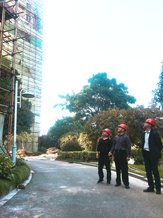 公司監(jiān)察室人員到溫嶺水韻新村墻體脫落修復工程現(xiàn)場督查