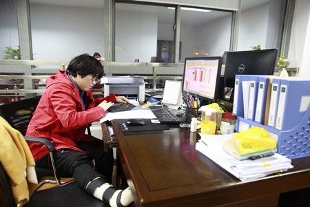圖為股權投資部李茜茜帶傷工作現(xiàn)場 “每天,我們會第一時間審核各收購點上報的資料,如果發(fā)現(xiàn)股東身份證、銀行賬號等信息不準確,我會及時聯(lián)系收購點。”負責股權收購后臺數(shù)據(jù)匹配處理、收購款匯總、股權過戶等工作的李茜茜,對待每個環(huán)節(jié)都十分細致認真,為確保各類數(shù)據(jù)準確無誤,她都要經過多番核對,當確定下收購款匯總表時,便及時與財務結算中心對接,不讓任何一環(huán)掉鏈子。 10月21日,腳不慎扭傷而無法行走的李茜茜,考慮到股權收購正處于緊要關頭,工作量大,數(shù)據(jù)處理復雜,人手緊缺等各方因素,她放心不下,堅持帶傷上崗,并主動要求家人到單位照顧日常生活,集團辦公室專門調出休息室供其臨時使用。 “我們很理解支持女兒的工作,也很感謝臺州高速對我們的關懷,希望她盡心盡力做好工作?!崩钴畿绺改缸灾琅畠菏軅翘炱?,便放下手中事,專門從溫嶺趕來讓女兒安心工作,一家三口助力完成股權收購工作。 據(jù)股權投資部副經理楊靜介紹,李茜茜在股權投資部已有兩年,還有股權代理點一線業(yè)務經驗,平日好學的她,無論是在業(yè)務專業(yè)知識還是數(shù)據(jù)軟件處理上,都非常嫻熟,在這樣的收購關鍵時期,其他人員無法有效代替她的工作。 自集團股權收購工作開展以來,收購一線繁忙的景象每日在“股權收購點工作小組”微信群里呈現(xiàn),幕后的工作人員也常常加班加點,幾乎沒有正常的上下班時間,受傷的李茜茜同其他人一樣毫無怨言,每日堅持完成各項工作,大家團結一致,確保股權收購順利推進。 陳林偉