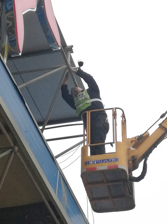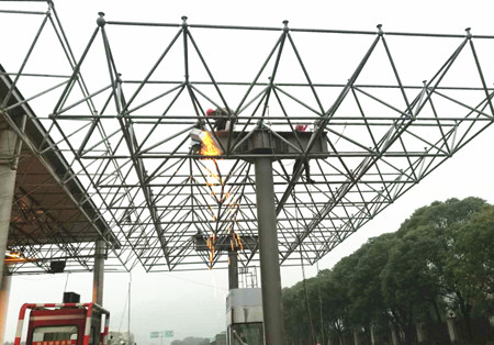 “起吊”,隨著現(xiàn)場(chǎng)施工管理人員的一聲令下,兩臺(tái)吊機(jī)吊著鋼結(jié)構(gòu)網(wǎng)架緩緩升起?!巴笠稽c(diǎn),慢一點(diǎn)”經(jīng)過(guò)近十分鐘的努力,在施工現(xiàn)場(chǎng)管理人員的準(zhǔn)確指揮下,吊機(jī)駕駛員輕輕地把鋼結(jié)構(gòu)網(wǎng)架準(zhǔn)確無(wú)誤地放在預(yù)定支架上,溫嶺西收費(fèi)車道鋼結(jié)構(gòu)網(wǎng)架成功完成吊裝。接下來(lái)施工人員陸續(xù)在網(wǎng)架上鋪設(shè)面板,安裝標(biāo)志牌、照明、監(jiān)控等設(shè)備,并對(duì)崗?fù)C(jī)電進(jìn)行調(diào)試。