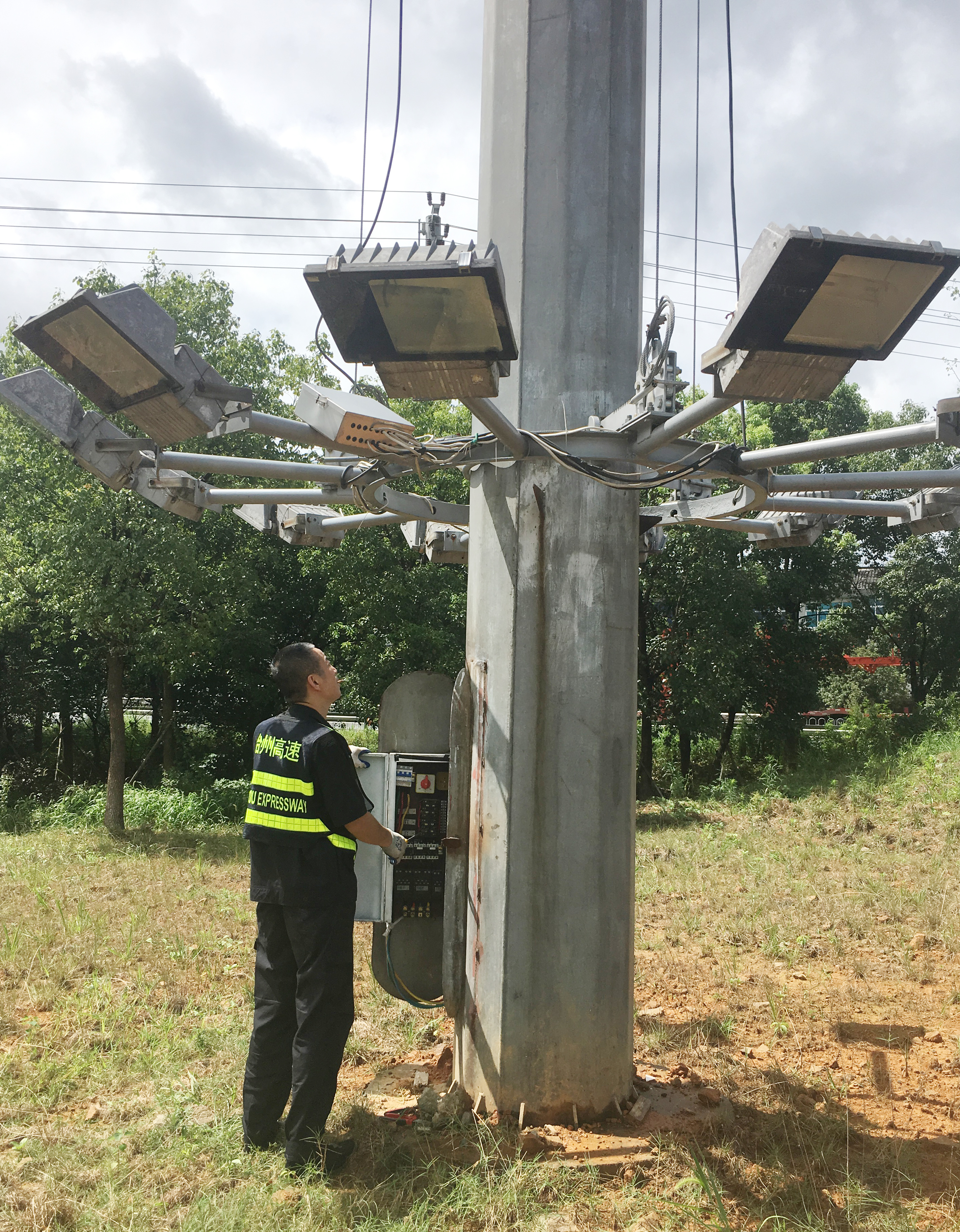及時下降各收費(fèi)所互通區(qū)高桿燈。為提升互通區(qū)照明亮度,減少因選錯路口而帶來的不必要的麻煩,集團(tuán)在各收費(fèi)站出入口互通區(qū)共安裝了11盞40米高度高桿燈,每盞高桿燈上方有12盞鈉燈。倘若這些高桿燈上鈉燈在臺風(fēng)襲擊下一旦掉落后果將不勘設(shè)想。8月8日,中心再次召集各班人員對收費(fèi)沿線高桿燈進(jìn)行了下降處理。因高桿燈四周雜草叢生,在下降時維修隊(duì)員不僅要忍受底下蚊蟲肆意叮咬,還要克服時而烈日時而大雨的怪異天氣,沒放幾盞隊(duì)員便濕透了全身,衣服是濕了又干,干了再濕。