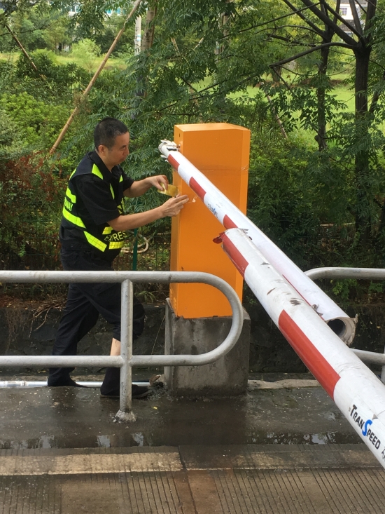 增強(qiáng)機(jī)電設(shè)備防水措施。集團(tuán)收費(fèi)站有很多機(jī)電設(shè)備直接安裝在戶外,因外層有開關(guān)柜保護(hù),一般雨水是無法滲透的??梢坏┯錾吓_風(fēng)雨等惡劣天氣就很難確保內(nèi)部設(shè)備不會被打濕,尤其是計量柜里面的計重設(shè)備,一旦短路損壞會立即造成車輛擁堵。因此,剛完成高桿燈下降工作的中心隊(duì)員顧不上休息,又馬不停蹄趕赴收費(fèi)所將計量柜、欄桿機(jī)等重要設(shè)備用封帶紙進(jìn)行密封處理,不漏過任何一處可能進(jìn)水的地方,大大增強(qiáng)了這些設(shè)備防水性能。