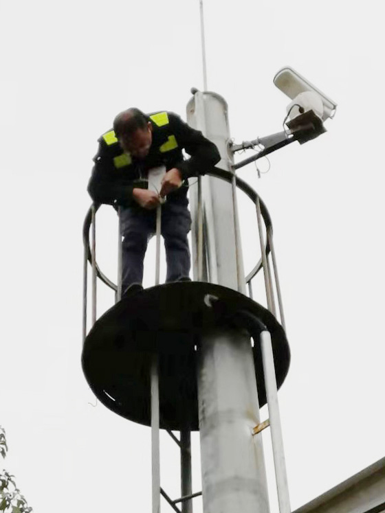圖為搶修人員在安裝無(wú)線網(wǎng)橋 面對(duì)難題,中心隊(duì)員并沒(méi)有退縮,而是積極面對(duì)、集思廣義,想到了利用無(wú)線網(wǎng)橋點(diǎn)對(duì)點(diǎn)的橋接通迅功能,將斷點(diǎn)處的攝像機(jī)視頻信號(hào)通過(guò)網(wǎng)橋無(wú)線連接,傳輸?shù)脚R近攝像機(jī)光端機(jī)上,隨后再一起將信號(hào)傳輸?shù)奖O(jiān)控中心,實(shí)現(xiàn)網(wǎng)絡(luò)和通迅共享的解決方案。這既可以避免因封道施工造成車(chē)輛擁堵,又可以為公司節(jié)省近萬(wàn)元維修費(fèi)用。然而在實(shí)際操作中,還要解決另外一個(gè)棘手的問(wèn)題,就是無(wú)線網(wǎng)橋供電電流和電壓無(wú)法直接從攝像機(jī)電瓶中獲取,但這些同樣難不到中心隊(duì)員們,他們又想到了之前路面拆卸下來(lái)逆變器,利用它的逆變?cè)沓晒鉀Q網(wǎng)橋供電問(wèn)題。 說(shuō)降就降的氣溫,加上路面飛馳而過(guò)的車(chē)輛帶來(lái)的陣陣寒風(fēng),吹得隊(duì)員瑟瑟發(fā)抖。但他們都知道要是晚一天修復(fù)網(wǎng)絡(luò),路面就會(huì)多一份隱患。在中心負(fù)責(zé)人的帶領(lǐng)下,搶修人員按照之前設(shè)定的方案,一人負(fù)責(zé)云臺(tái)上面的無(wú)線網(wǎng)橋安裝,另外兩人負(fù)責(zé)地面逆變器及網(wǎng)絡(luò)的安裝。由于大家分工明確、配合默契,不到半天時(shí)間,路面兩處斷點(diǎn)視頻信息再次出現(xiàn)在了監(jiān)控中心的大屏上。 項(xiàng)寅曉
