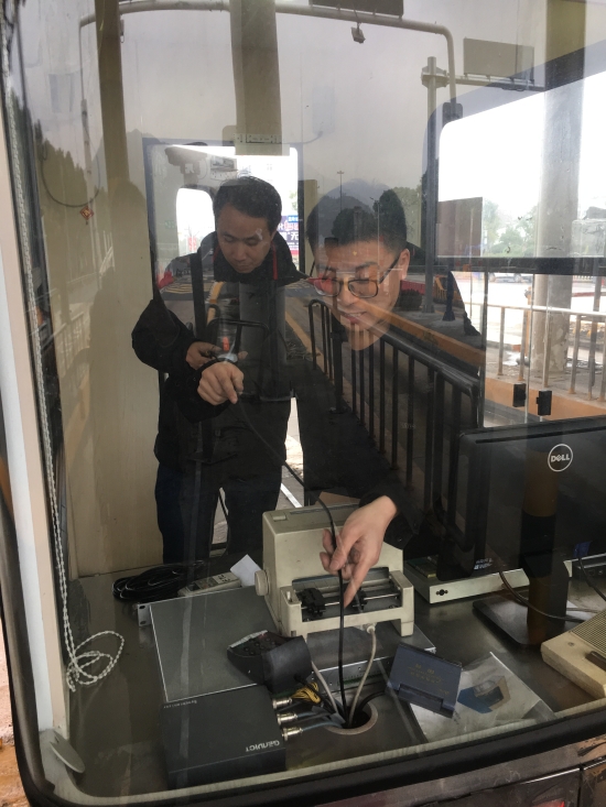 圖為工作人員在安裝手持OBU讀寫器 在得知這一情況后,工程部機(jī)電設(shè)備維養(yǎng)中心一開始想到了通過加大天線功率的方法來提高OBU讀寫成功率,不但收效甚微還造成了鄰道干擾,并將同信道的相鄰車道車輛OBU信息也一同讀取了,造成了數(shù)據(jù)混亂,增加了收費(fèi)人員的工作量。 正在一籌莫展之際,中心負(fù)責(zé)人通過全省收費(fèi)系統(tǒng)互助群了解到省內(nèi)部分路段針對(duì)這一狀況啟用了手持式OBU讀寫器,在反響不錯(cuò)后,中心人員立刻聯(lián)系了設(shè)備廠家訂購郵寄。 經(jīng)過維護(hù)人員一天的安裝調(diào)試,手持式OBU讀寫器已成功接入到每個(gè)車道崗?fù)?。這種新型手持讀寫器具有DSRC專用短程通信接口,可以識(shí)別車輛上OBU設(shè)備內(nèi)特有的編碼,判別車型,寫入信息,計(jì)算通行費(fèi)用,并自動(dòng)從車輛用戶的專用帳戶中扣除通行費(fèi)。當(dāng)現(xiàn)有車道天線交易失敗時(shí),收費(fèi)人員便可用它對(duì)車輛OBU進(jìn)行重新搜索并自動(dòng)進(jìn)行交易。 手持式OBU讀寫器的投入使用,彌補(bǔ)了現(xiàn)有車道OBU讀寫器的缺陷與不足,有效減少車輛擁堵現(xiàn)象的發(fā)生,便于收費(fèi)人員現(xiàn)場靈活操作,提高收費(fèi)站的通行效率。 項(xiàng)寅曉