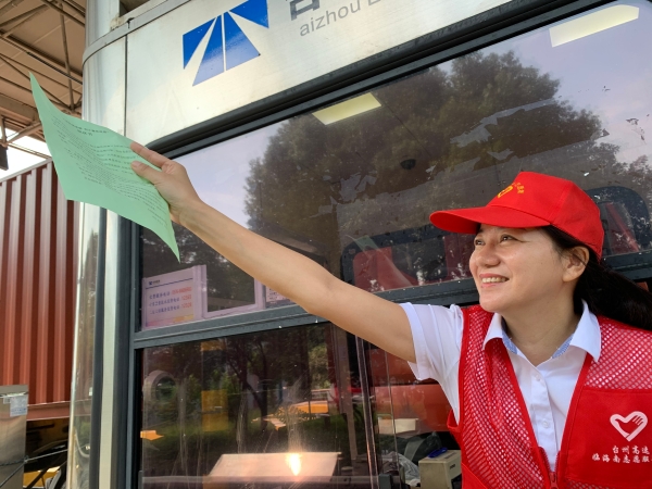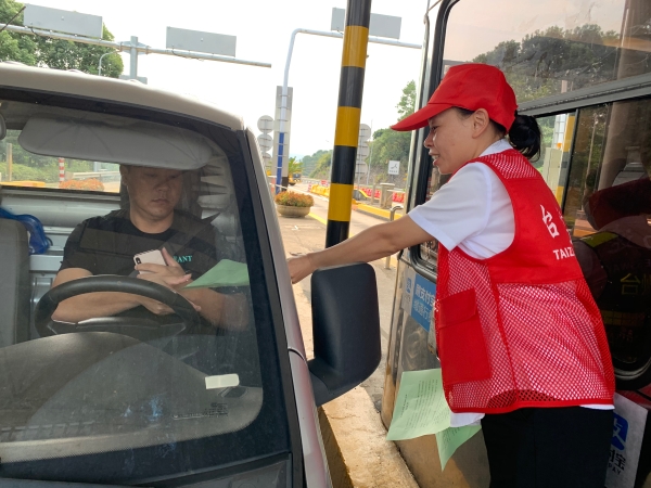 9月10日上午,臨海南收費(fèi)所志愿者身穿耀眼的紅馬甲,在車道出入口向過(guò)往司乘人員發(fā)放“弘揚(yáng)傳統(tǒng)美德,制止餐飲浪費(fèi)”倡議書,號(hào)召?gòu)V大司機(jī)從自己做起、從現(xiàn)在做起、從點(diǎn)滴做起,自覺抵制餐飲浪費(fèi),積極號(hào)召身邊的人傳承勤儉節(jié)約的良好家風(fēng),向全社會(huì)營(yíng)造“浪費(fèi)可恥、節(jié)約為榮”的深厚氛圍。