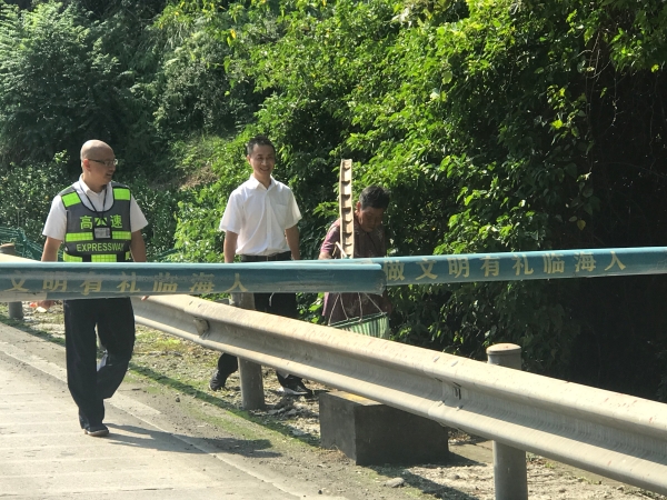 國慶期,臨海南收費站口一位年過花甲的附近村民執(zhí)意要步行上高速,當(dāng)班工作人員及時勸阻,一路陪同,保障了老人家的人身安全,也維護了高速公路的正常秩序。