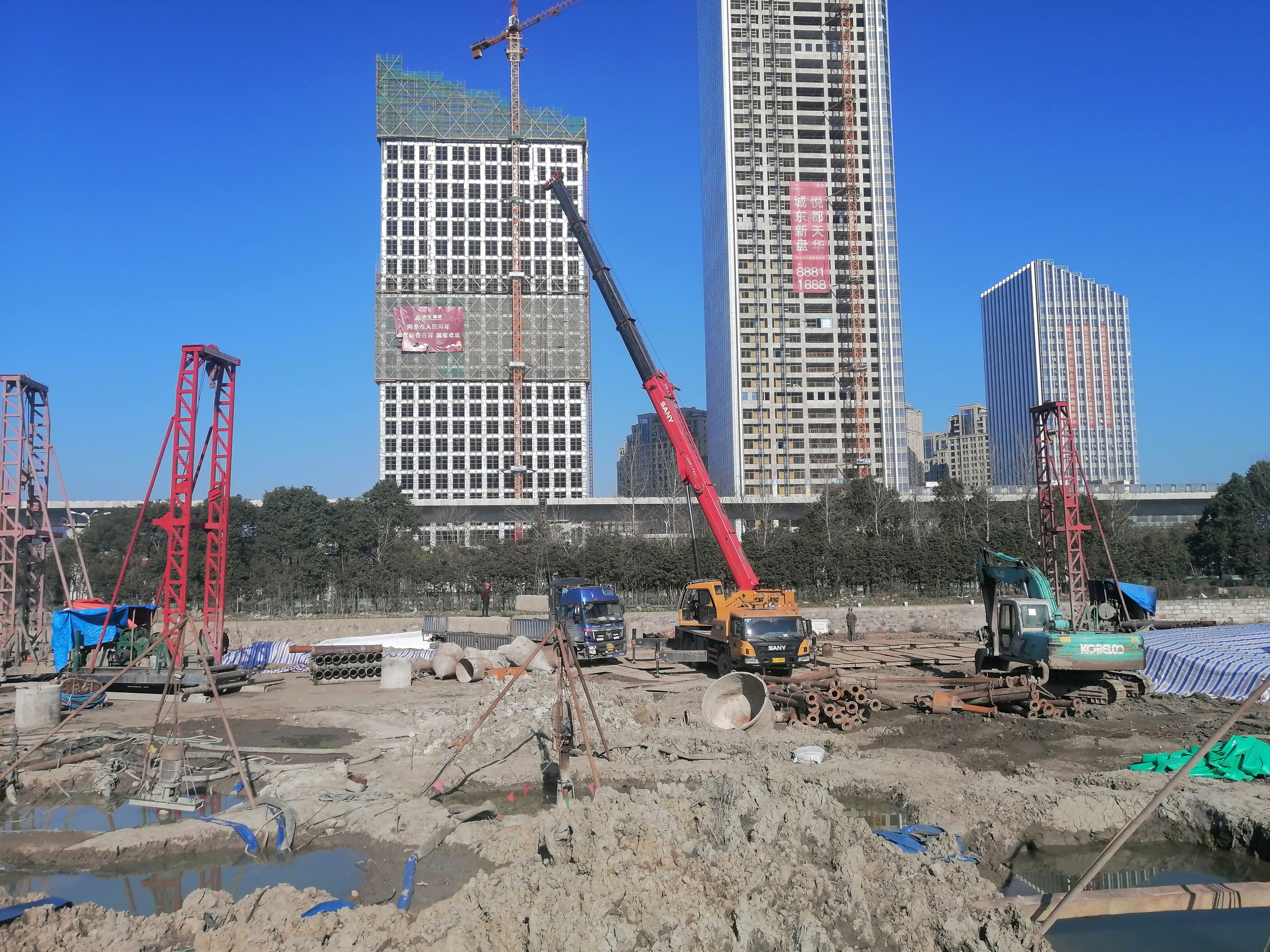 2月20日,黃巖羽村項(xiàng)目泥漿固化設(shè)備進(jìn)場(chǎng)安裝,鉆孔灌注樁設(shè)備陸續(xù)進(jìn)場(chǎng)。2月24日,圍護(hù)攪拌樁正式開(kāi)始施工,24日下午,工程部組織總包、監(jiān)理單位及樁基分包單位召開(kāi)施工進(jìn)度、安全及防疫專(zhuān)題會(huì)議,各項(xiàng)工作緊鑼密鼓地開(kāi)展。