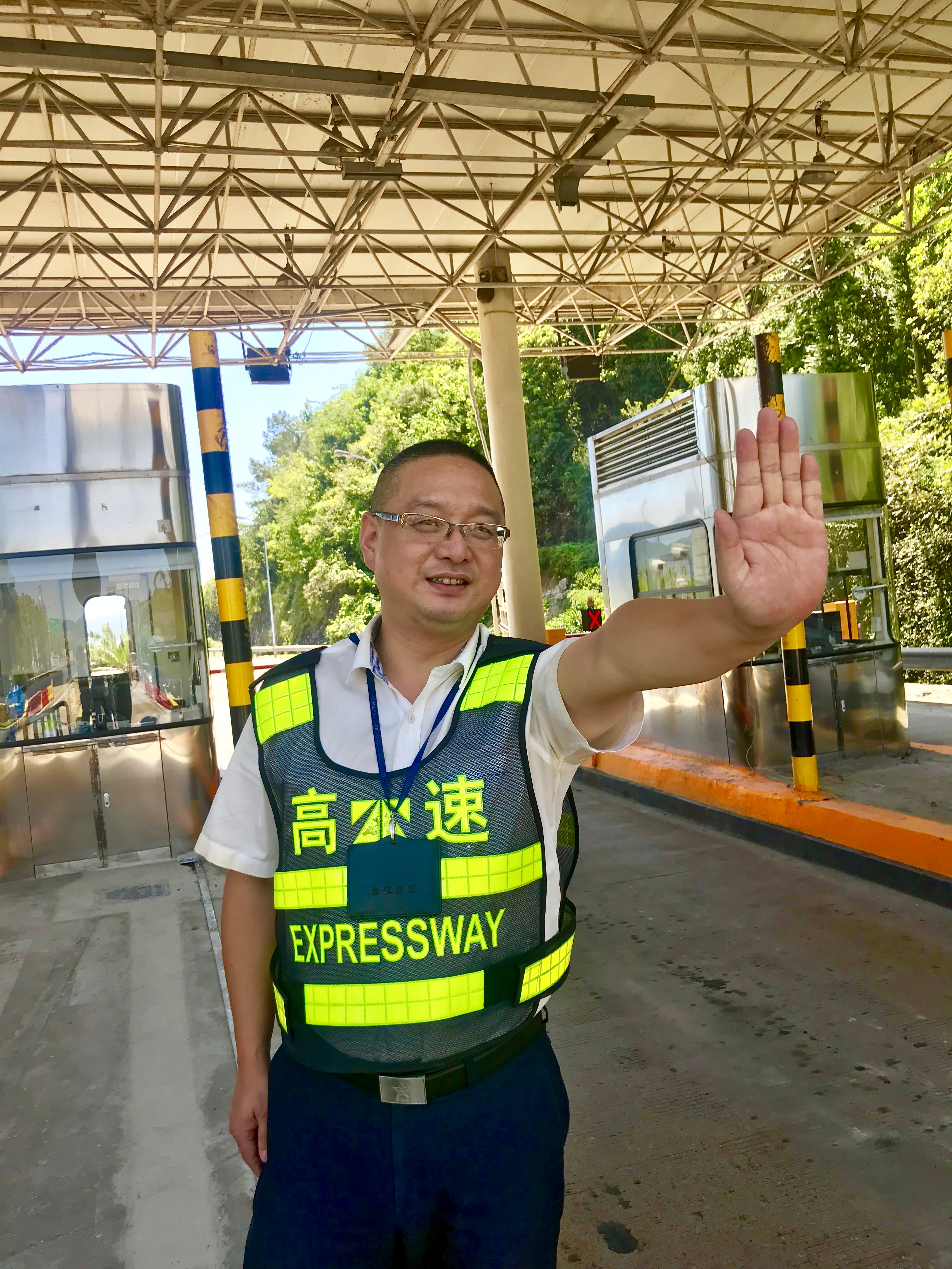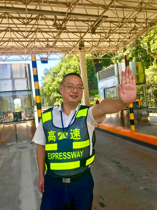 臨海南收費(fèi)所有這么一個(gè)人,說話快言快語、做事干凈利落,自1999年10月至今,二十年來,始終保持昂揚(yáng)向上的精神狀態(tài)。一年四季,酷暑寒冬,無論是當(dāng)收費(fèi)員,還是擔(dān)任收費(fèi)班長,任勞任怨、默默奉獻(xiàn),全身心的堅(jiān)守在收費(fèi)一線。他就是我們收費(fèi)四班的老班長——楊俊輝。