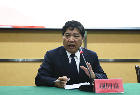 圖為集團黨委副書記、總經(jīng)理張建平對學(xué)習(xí)領(lǐng)會落實黨的十九大精神進(jìn)行全面部署