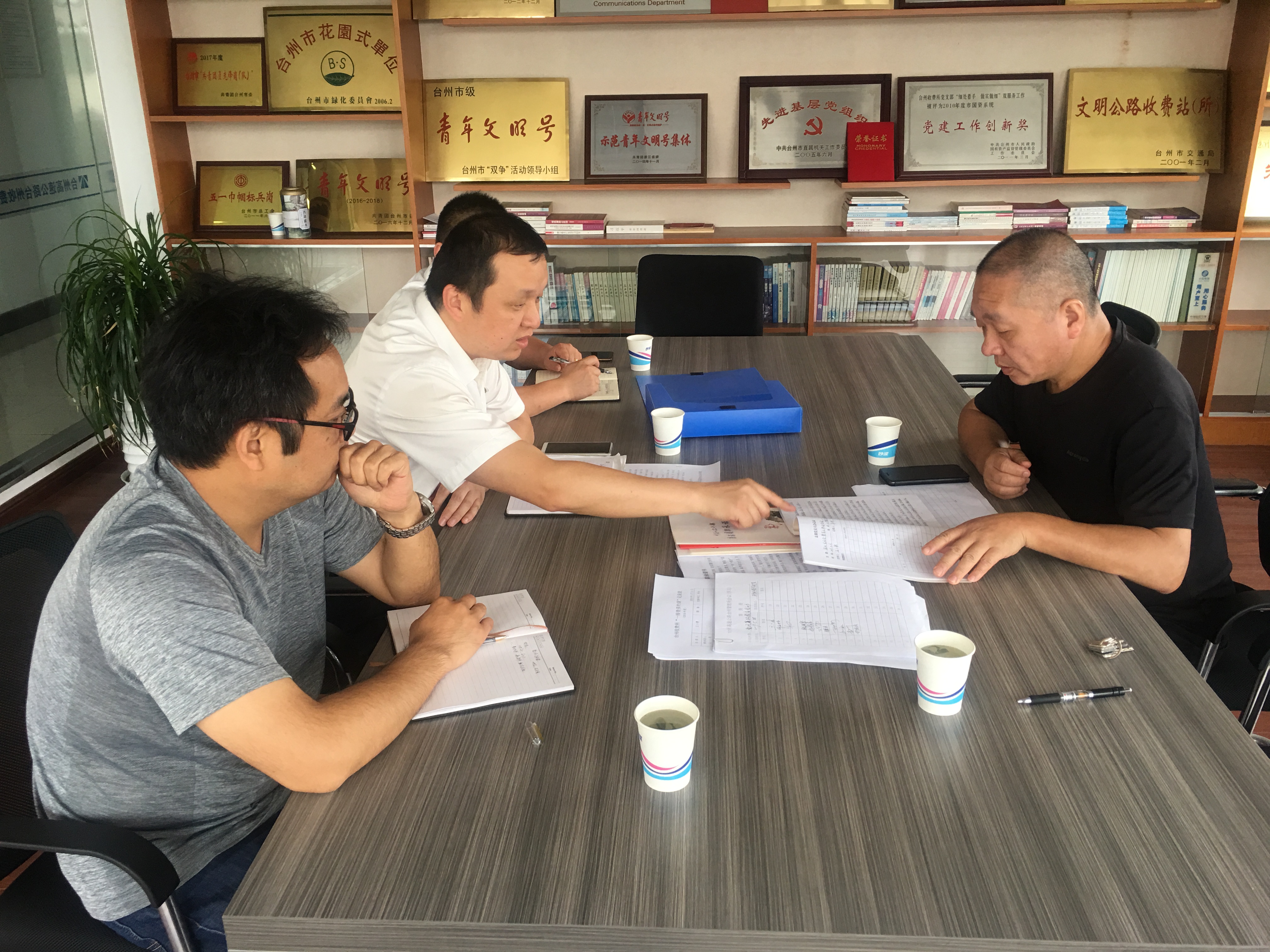 圖為檢查組在臺(tái)州收費(fèi)所檢查 本次檢查以年初簽訂的《黨風(fēng)廉政建設(shè)責(zé)任書》和新出臺(tái)的《集團(tuán)公司黨風(fēng)廉政建設(shè)責(zé)任制檢查考核辦法》為依據(jù),以廉政教育開展頻率及支部書記上廉政黨課完成情況為重點(diǎn),通過(guò)聽(tīng)取責(zé)任人工作情況介紹、翻閱相關(guān)工作臺(tái)帳資料等形式,查證黨風(fēng)廉政建設(shè)責(zé)任實(shí)際落實(shí)情況。