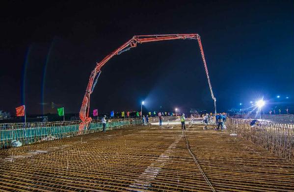 圖為4月21日凌晨,內環(huán)路8#立交第二聯(lián)箱梁頂板澆筑場景。鐘 彪攝 8#立交工程位于黃巖區(qū)紅三村和紅四村,主線橋8#立交全長1300多米,是臺州市首座全互通四層立交。東接九峰公園,西臨黃巖主城區(qū),上跨二環(huán)東路,南北連104國道,作為內環(huán)路唯一一個位于城鄉(xiāng)接合部關鍵節(jié)點,復雜的施工環(huán)境,繁瑣的交通組織,給工程的正常推進帶來了嚴峻的考驗?!拔覀內w參建人員根據(jù)現(xiàn)場情況不斷優(yōu)化方案,細化措施,狠抓落實,連續(xù)作戰(zhàn),保證每月完成既定任務指標。”8#立交項目現(xiàn)場負責人金小琳表示。 目前,8#立交主線橋梁順利貫通,離11月11日主線通車的目標又邁進了一大步。據(jù)臺州高速市政建設投資有限公司副總經(jīng)理何翔介紹,接下來的工作重心是在主體結構完工的基礎上抓緊匝道及附屬構筑物的施工,爭取讓臺州市民能盡早用上這條民心路。 (本文轉自《臺州日報》2017年4月22日第01版) http://paper.taizhou.com.cn/tzrb/html/2017-04/22/content_794805.htmfrom=groupmessage&isappinstalled=1