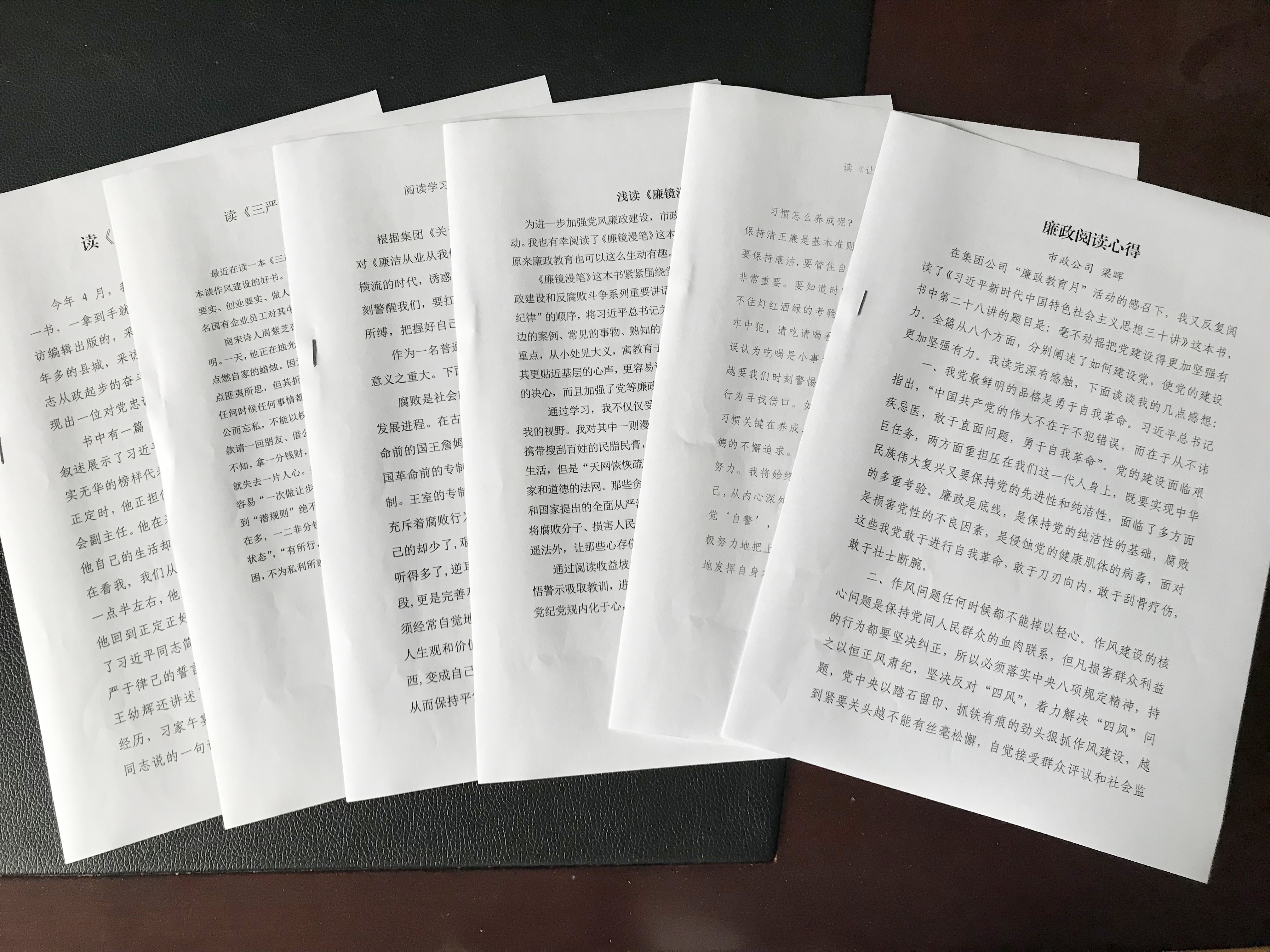 圖為集中學(xué)習(xí)現(xiàn)場 每月月度例會上,市政公司組織員工有針對性地學(xué)習(xí)集團(tuán)和市政公司的制度與流程。該公司制作了一本制度匯編,并分發(fā)到人手一本,要求員工認(rèn)真學(xué)習(xí),熟悉公司辦事流程和規(guī)章,工作中做到照章辦事,增強(qiáng)員工的制度觀念。 5月月初,市政公司組織開展讀書思廉活動,要求每位員工讀一本勤政廉政書籍,并撰寫一篇讀書心得。從一篇篇心得體會文章中,看到有從歷史廉政小故事切入的,也有從習(xí)近平總書記的新時代中國特色社會主義思想和十九大報告中領(lǐng)悟道理的,字字流露了真情實感,句句體現(xiàn)出真切感悟,真正做到了學(xué)有所悟,營造了良好的學(xué)廉思廉的氛圍。
